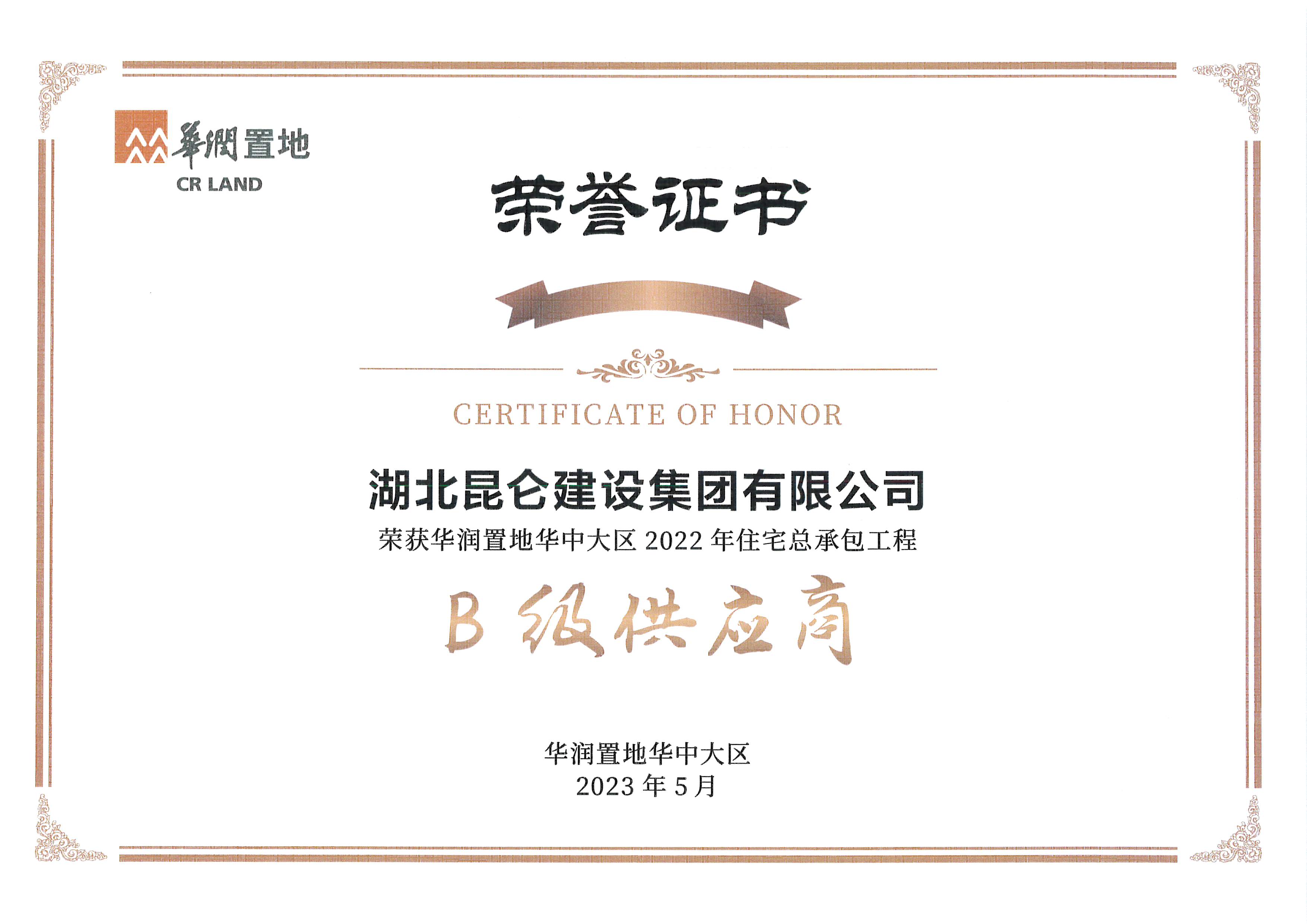 • 2022年華潤置地華中大區住宅工程(B級供應商)...